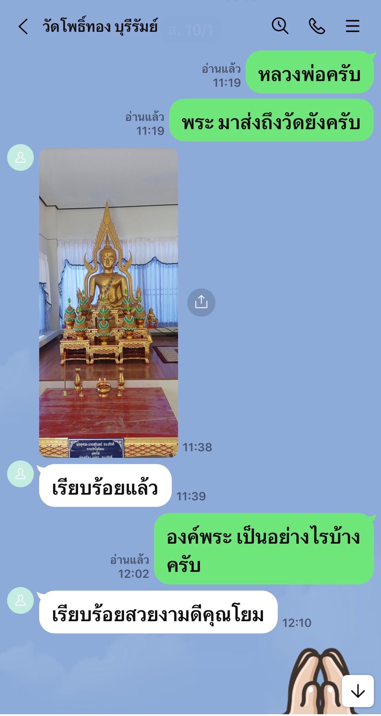 วันที่ 10 มกราคม 2569 ทางกองทุนฯ ได้มอบหมายให้ตัวแทนเดินทางไปที่วัดโพธ์ทอง จังหวัดบุรีรัมย์ เพื่อนำพระประธานในศาลาปฎิบัติธรรม “พระพุทธชินราช ฐานบัว พ่นสีทอง ขนาดหน้าตัก 50 นิ้ว“ ที่ครอบครัวสินสมบูรณ์ รับเป็นเจ้าภาพสร้างถวาย (ค่าขนส่งไปที่วัด 7,000 บาท คุณฝ้ายรับเป็นเจ้าภาพออกให้) นำไปส่งมอบให้กับทางวัด การส่งมอบในวันนี้เป็นไปด้วยความเรียบร้อย องค์พระประธานได้ส่งถึงวัดโดยสวัสดิภาพ และได้นำเข้าไปประดิษฐานไว้ในศาลาปฏิบัติธรรมเป็นที่เรียบร้อย
