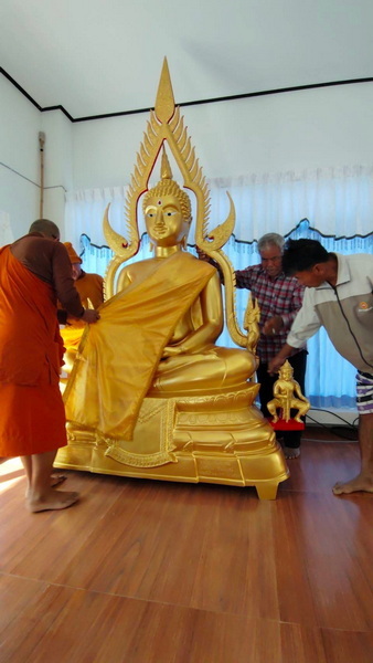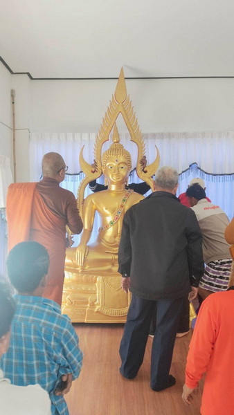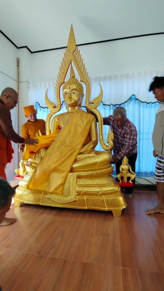 ทางกองทุนฯ ก็ขออนุโมทนาสาธุและขอขอบคุณ ทางเจ้าภาพและคุณฝ้ายเป็นอย่างมาก ที่ได้ไว้วางใจและมอบหมายให้ทางกองทุนฯ เป็นผู้ดำเนินการจัดสร้างพระประธาน หรือพระพุทธชินราชองค์นี้ให้ ส่วนวัดที่นำพระประธานฯ ไปส่งมอบ หรือไปถวาย เป็นวัดที่ทางกองทุนฯ จัดหาให้กับทางเจ้าภาพ ซึ่งทางวัดได้ติดต่อขอพระประธานฯ องค์นี้มากับทางกองทุนฯ โดยขอให้ทางกองทุนฯ ช่วยประชาสัมพันธ์หาเจ้าภาพจัดสร้างให้