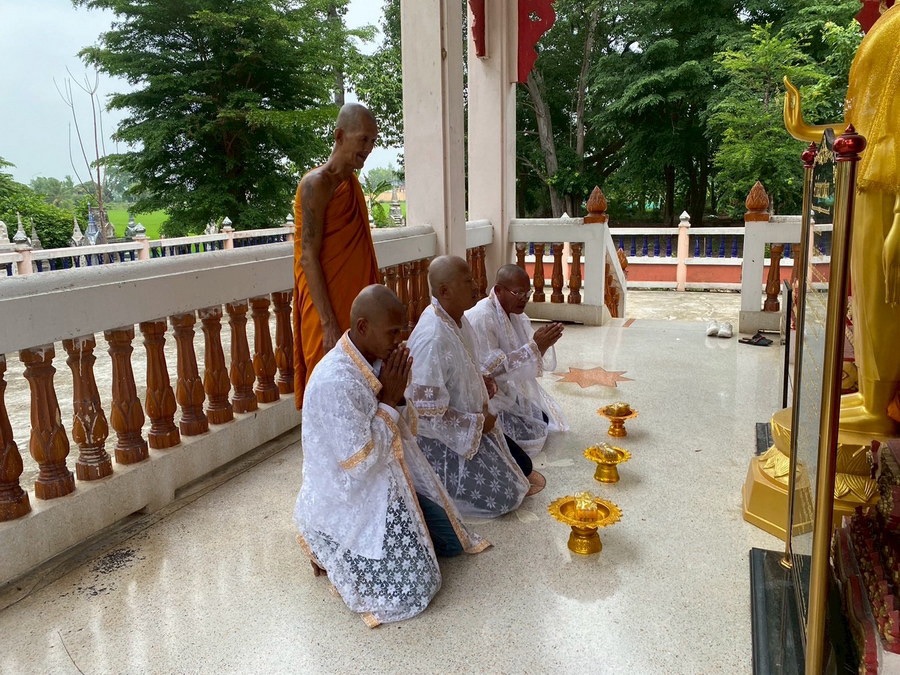 พิธีอุปสมบทให้กับผู้ที่มาขอบวช เพื่อตั้งใจปฏิบัติ แต่ผู้บวชมีปัญหาติดขัดในเรื่องค่าใช้จ่าย จำนวน 5 รูป ที่วัดโพธิ์สุทธาลัย จ.สิงห์บุรี