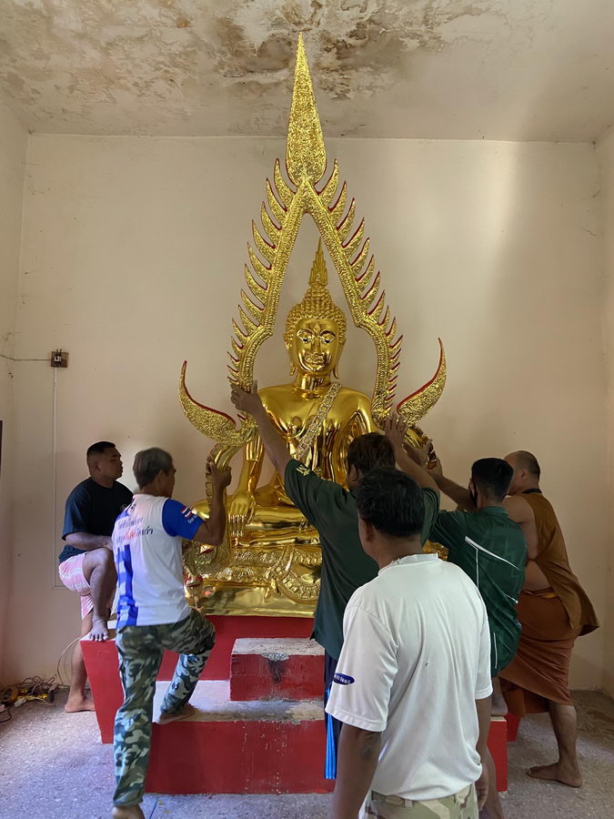 วันที่ 17 ตุลาคม 2568 ทางกองทุนฯ ได้มอบหมายให้ตัวแทนเดินทางไปที่วัดศรีสำราญ จังหวัดอุบลราชธานี เพื่อนำพระประธานในอุโบสถ “พระพุทธชินราช ฐานบัว เนื้อทองเหลือง ลงรักปิดทอง ขนาดหน้าตัก 60 นิ้ว พร้อมพระอัครสาวก ซ้าย/ขวา“ ที่คุณOh รับเป็นเจ้าภาพสร้างถวาย นำไปส่งมอบให้กับทางวัด การส่งมอบในวันนี้เป็นไปด้วยความเรียบร้อย องค์พระประธานฯ ได้ส่งถึงวัดตรงตามกำหนดเวลาที่นัดหมาย และได้ทำถูกต้องตามแบบ ที่ทางเจ้าภาพได้สั่งทำไว้ทุกประการ ทางกองทุนฯ ก็ขออนุโมทนาสาธุการ และขอขอบคุณ ทางคณะเจ้าภาพเป็นอย่างมาก ที่ได้ไว้วางใจและมอบหมายให้ทางกองทุนฯ เป็นผู้ดำเนินการจัดสร้างพระประธานฯ หรือพระพุทธชินราชองค์นี้ให้ ซึ่งองค์นี้ เป็นองค์ที่ 8 ที่ทางเจ้าภาพ ให้ทางกองทุนฯเป็นผู้ดำเนินการเทหล่อ และจัดสร้างให้ ส่วนวัดที่นำพระประธานฯ ไปส่งมอบ เป็นวัดที่ทางกองทุนฯ จัดหาให้กับทางเจ้าภาพ ซึ่งทางวัดได้ติดต่อขอพระประธานฯ องค์นี้มากับทางกองทุนฯ โดยขอให้ทางกองทุนฯ ช่วยประชาสัมพันธ์หาเจ้าภาพจัดสร้างให้