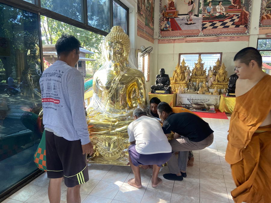 วันที่ 29 ตุลาคม 2568 ทางกองทุนฯ ได้มอบหมายให้ตัวแทนเดินทางไปที่วัดพระยืน จังหวัดหนองคาย เพื่อนำพระประธานในอุโบสถ “พระพุทธชินราช ฐานบัว เนื้อทองเหลือง ลงรักปิดทอง ขนาดหน้าตัก 60 นิ้ว “ ที่คุณธันยา รับเป็นเจ้าภาพสร้างถวาย นำไปส่งมอบให้กับทางวัด การส่งมอบในวันนี้เป็นไปด้วยความเรียบร้อย องค์พระประธานฯ ได้ส่งถึงวัดตรงตามกำหนดเวลาที่นัดหมาย และได้ทำถูกต้องตามแบบ ที่ทางเจ้าภาพได้สั่งทำไว้ทุกประการ ทางกองทุนฯ ก็ขออนุโมทนาสาธุการ และขอขอบคุณ ทางคณะเจ้าภาพเป็นอย่างมาก ที่ได้ไว้วางใจและมอบหมายให้ทางกองทุนฯ เป็นผู้ดำเนินการจัดสร้างพระประธานฯ หรือพระพุทธชินราชองค์นี้ให้ ซึ่งองค์นี้ เป็นองค์ที่ 5 ที่ทางเจ้าภาพ ให้ทางกองทุนฯเป็นผู้ดำเนินการเทหล่อ และจัดสร้างให้ ส่วนวัดที่นำพระประธานฯ ไปส่งมอบ เป็นวัดที่ทางกองทุนฯ จัดหาให้กับทางเจ้าภาพ ซึ่งทางวัดได้ติดต่อขอพระประธานฯ องค์นี้มากับทางกองทุนฯ โดยขอให้ทางกองทุนฯ ช่วยประชาสัมพันธ์หาเจ้าภาพจัดสร้างให้