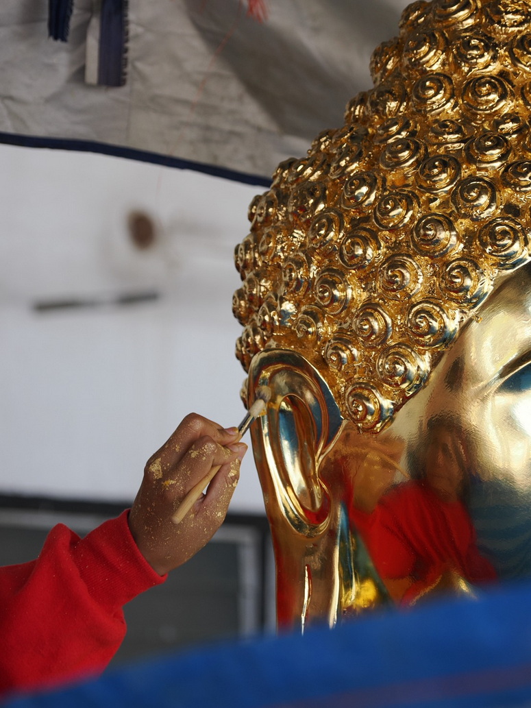 งานลงรักปิดทองพระประธาน เป็นงานที่จะต้องใช้แผ่นทองคำแท้ มาปิดองค์พระประธานให้ออกมาสวยงามตามรูป