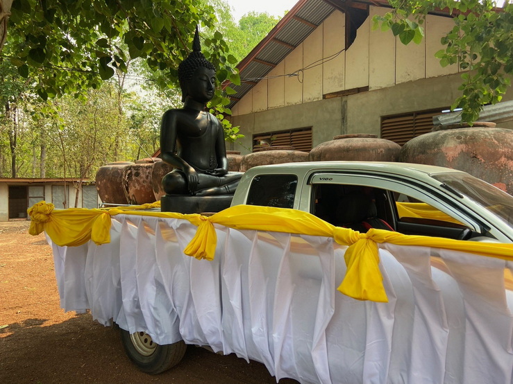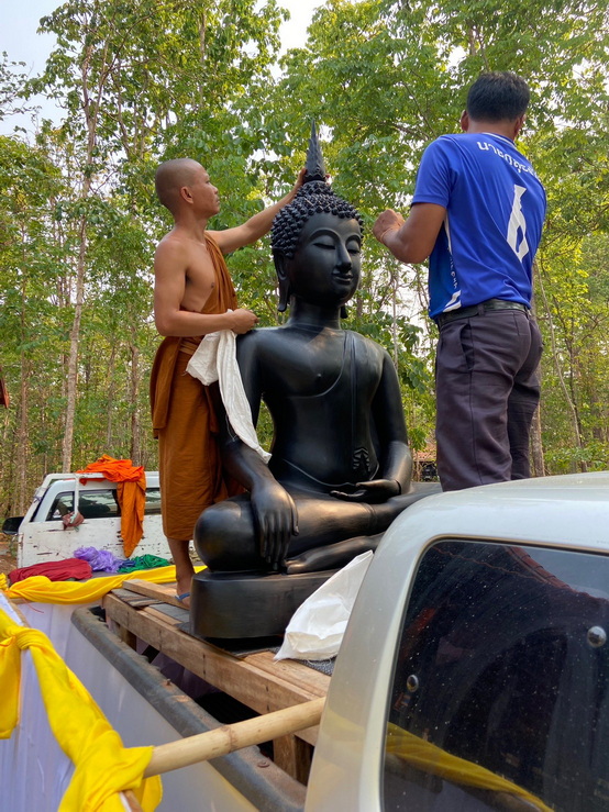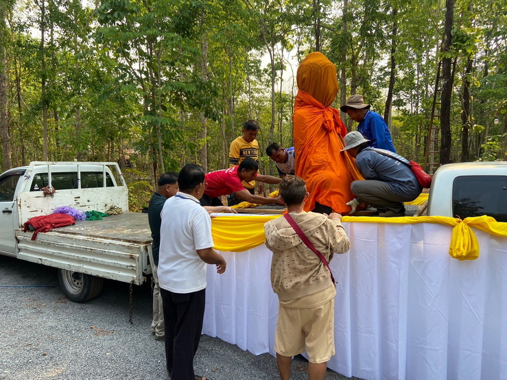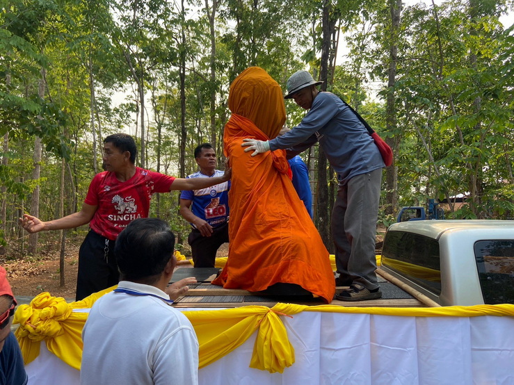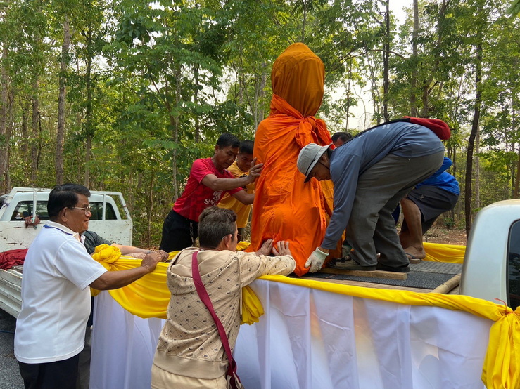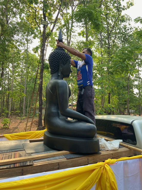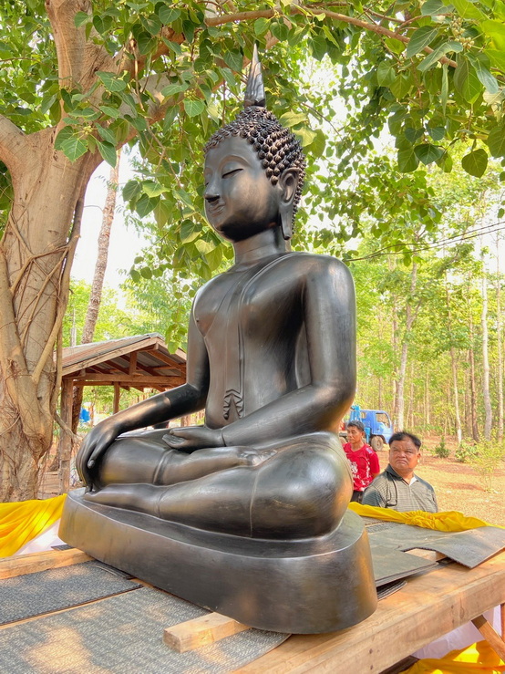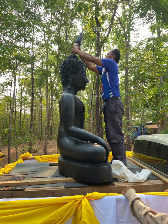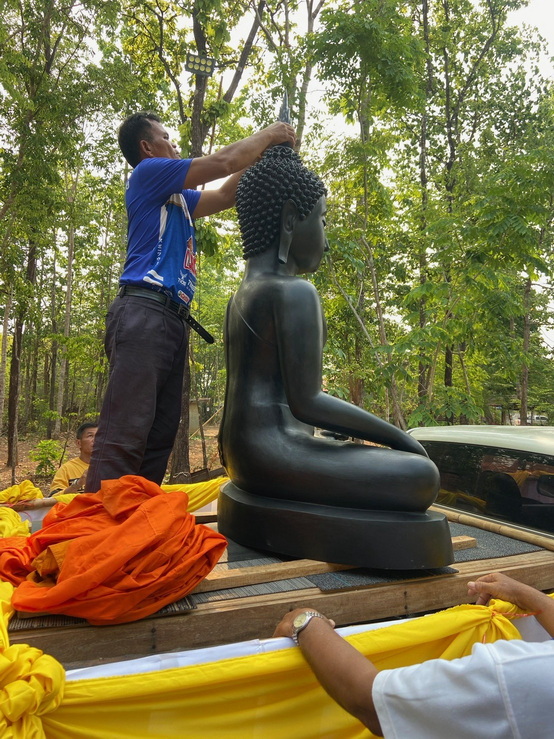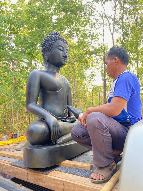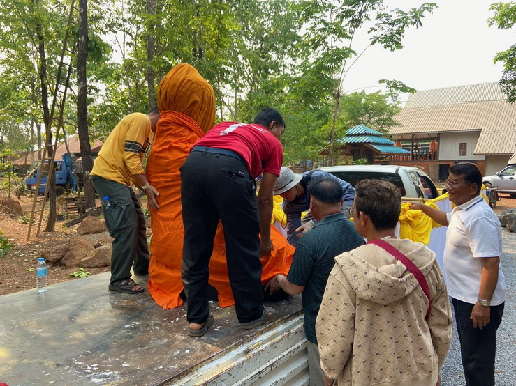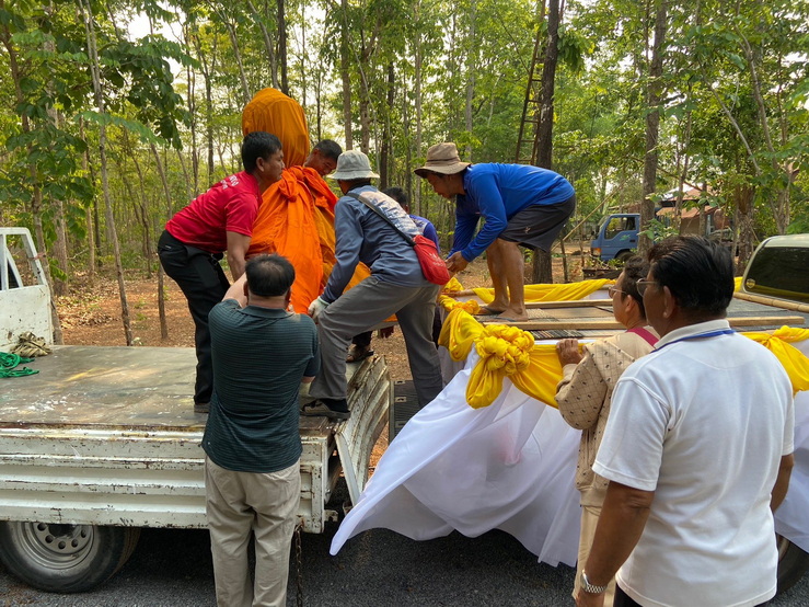 วันที่ 4 เมษายน 2569 ทางกองทุนฯ ได้มอบหมายให้ตัวแทนเดินทางไปที่วัดป่าแสงธรรม จังหวัดสกลนคร เพื่อนำพระประธานในอุโบสถ พระพุทธรูปปางมารวิชัย หรือปางชนะมาร เนื้อสำริด แบบเทหล่อทั้งองค์ ขนาดหน้าตัก 50 นิ้ว ที่คุณบุญธรรมและคณะได้สั่งทำไว้กับทางกองทุนฯ นำไปส่งมอบให้กับทางวัด การส่งมอบในวันนี้เป็นไปด้วยความเรียบร้อย องค์พระประธานได้ส่งถึงวัดโดยสวัสดิภาพ และส่งตรงตามกำหนดเวลาที่ได้นัดหมายไว้ ทางกองทุนฯ ก็ขออนุโมทนาสาธุ และขอขอบคุณทางคณะเจ้าภาพเป็นอย่างมากที่ได้ไว้วางใจและมอบหมายให้ทางกองทุนฯ เป็นผู้ดำเนินการจัดสร้างพระประธานปางมารวิชัย หรือปางชนะมารองค์นี้ให้ และในวันทำพิธีเทหล่อทางคณะเจ้าภาพได้เดินทางมาทำพิธีเทหล่อพระประธานองค์นี้ด้วยตัวเองที่โรงหล่อพระในจังหวัดนครปฐม โดยทางกองทุนฯ เป็นผู้ดำเนินการจัดพิธีเทหล่อให้ ส่วนวัดที่นำพระประธานไปส่งมอบเป็นวัดของทางเจ้าภาพที่จัดหามาเอง